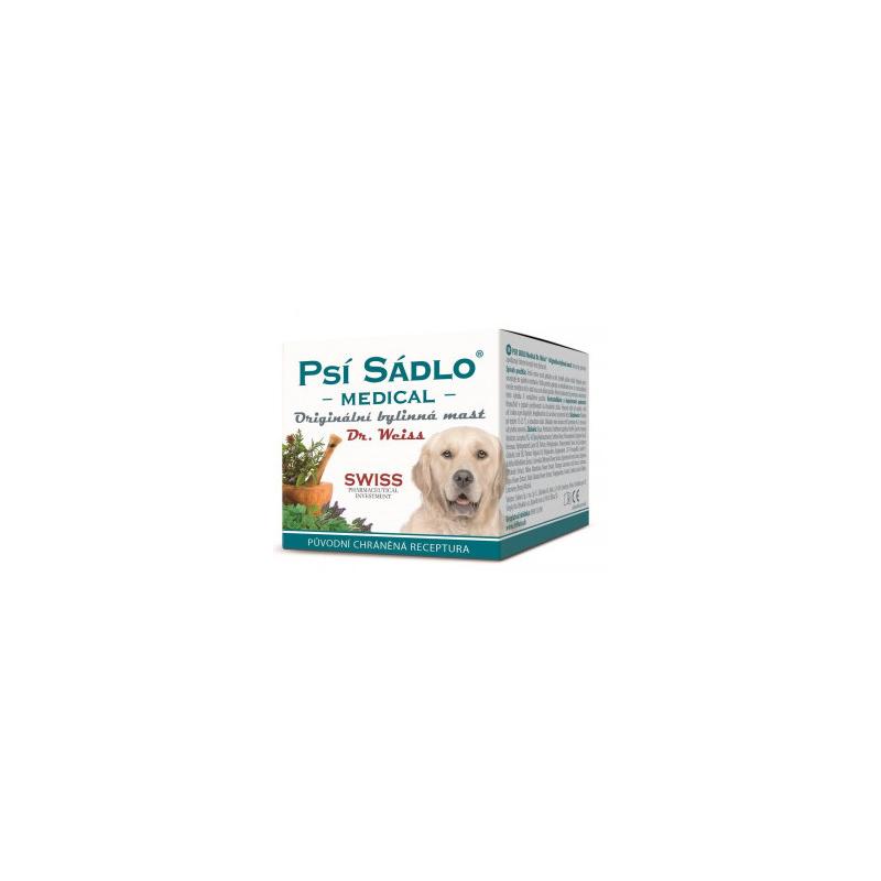 Psí sádlo Medical Dr. Weiss je bylinná mast, která kombinuje účinné extrakty rostlin známých pro své pozitivní účinky na dýchací cesty. Obsahuje světlík lékařský, měsíček, eukalyptus a tymián, které pomáhají při nachlazení, rýmě a kašli. Po aplikaci na hruď nebo záda se vytváří ochranný film, který zajišťuje lepší vstřebávání účinných látek a podporuje prokrvení tkání. Tento produkt je vhodný pro děti od 1 roku a dermatologicky testován. Použití je jednoduché – stačí jemně vmasírovat několikrát denně. S objemem 75 ml je ideální pro celou rodinu.
