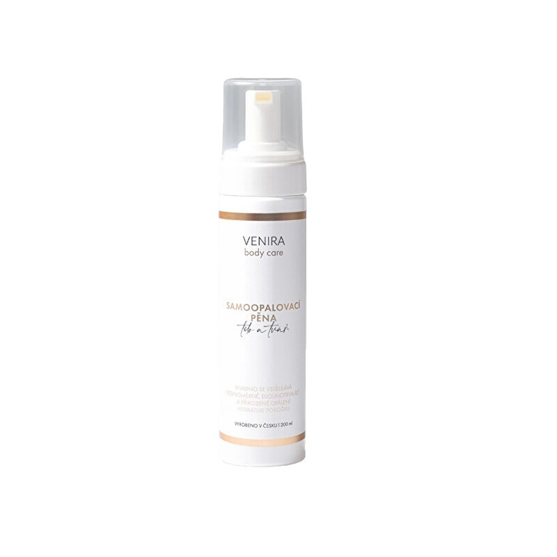 Samoopalovací pěna na tělo a tvář od značky Venira je ideálním řešením pro ty, kteří touží po přirozeně opálené pokožce bez vystavování se slunečnímu záření. Po aplikaci se můžete těšit na krásný odstín, který se vyvíjí během 3 až 8 hodin, v závislosti na typu pleti a požadované intenzitě opálení. Díky lehké a nelepivé konzistenci si můžete snadno regulovat výsledný efekt. Pěnu lze také smíchat s denním krémem pro jednotný odstín na obličeji. Výsledné opálení vydrží 3 až 7 dní, což závisí na péči o pokožku. Dermatologicky testováno, vhodné pro unisex použití.