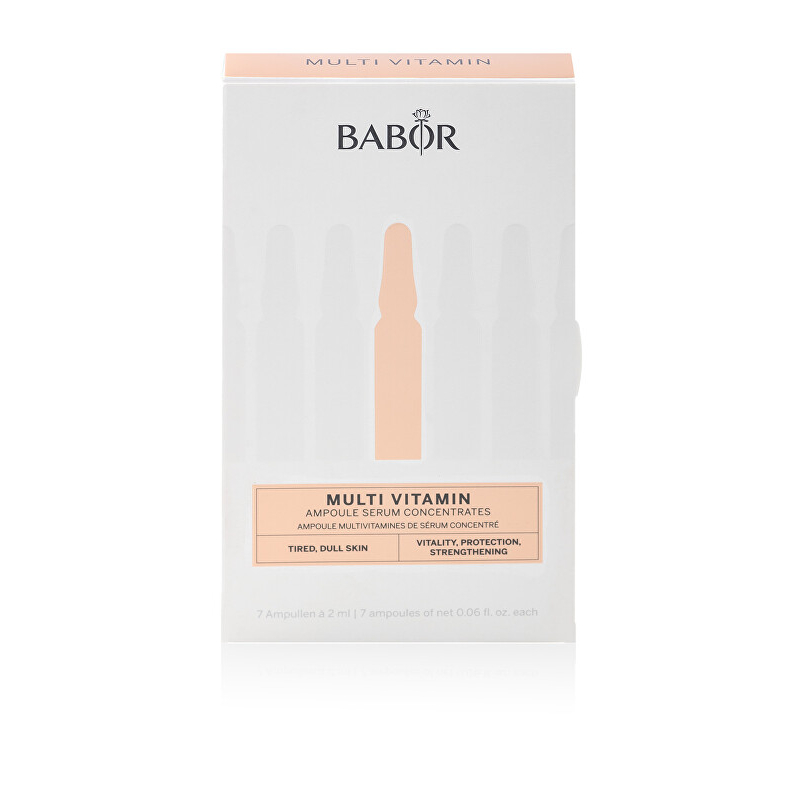 Multivitaminové pleťové ampule Multi Vitamin od značky Babor představují ideální řešení pro pleť, která potřebuje intenzivní výživu a ochranu. Tyto ampule obsahují pečlivě vybrané vitamíny a aktivní složky, které posilují přirozenou bariéru pleti a chrání ji před negativními vlivy prostředí. Díky jejich intenzivnímu regeneračnímu účinku se pleť stává hladší, jemnější a získává zdravý vzhled. Použití je jednoduché: stačí protřepat ampulku, otevřít a jemně vklepat koncentrát do obličeje, krku a dekoltu. Dopřejte své pleti potřebnou péči a vitalitu, kterou si zaslouží.
