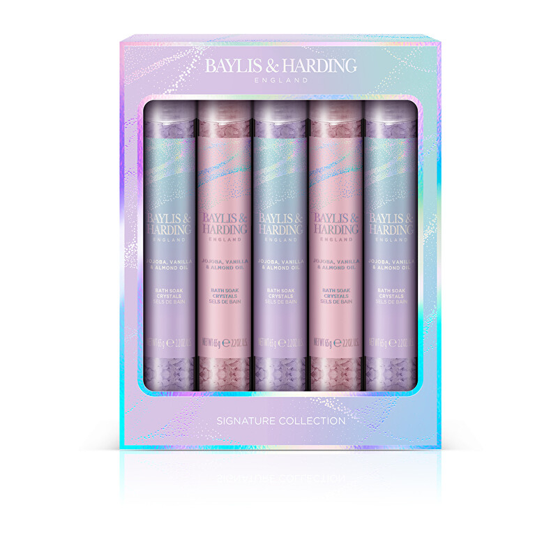 Dárková sada solí do koupele Jojoba, Vanilka & Mandlový olej nabízí jedinečný zážitek z relaxace a péče o pokožku. Každá sůl, balená v praktických 65g dávkách, je obohacena o přírodní oleje, které zanechávají pleť jemnou a hydratovanou. Vůně jojoby, vanilky a mandlového oleje se harmonicky prolíná s květinovými tóny, čímž vytváří uklidňující atmosféru pro vaši koupel. Tato kolekce je navržena s ohledem na estetiku, s metalickými odstíny a třpytivými detaily, které potěší nejen smysly, ale i oko. Vhodná pro vegany a bez testování na zvířatech, je ideálním dárkem pro každou ženu, která si zaslouží chvíli pohody.