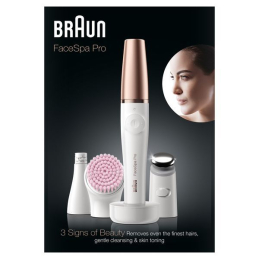 Epilátor Braun FaceSpa Pro 912 představuje revoluční řešení pro komplexní péči o pleť. Tento multifunkční přístroj 3v1 nabízí epilaci, čištění a tónování pleti v jednom elegantním designu. Epilační nástavec jemně odstraňuje chloupky i s kořínky, což zajišťuje dlouhotrvající hladkost. Čisticí kartáček šetrně odstraňuje nečistoty z citlivé pokožky, zatímco mikrovibrační hlava usnadňuje aplikaci sér a krémů pro optimální hydrataci a revitalizaci pleti. S elegantním pouzdrem pro uskladnění všech nástavců je FaceSpa Pro ideálním pomocníkem pro každodenní péči o pleť.