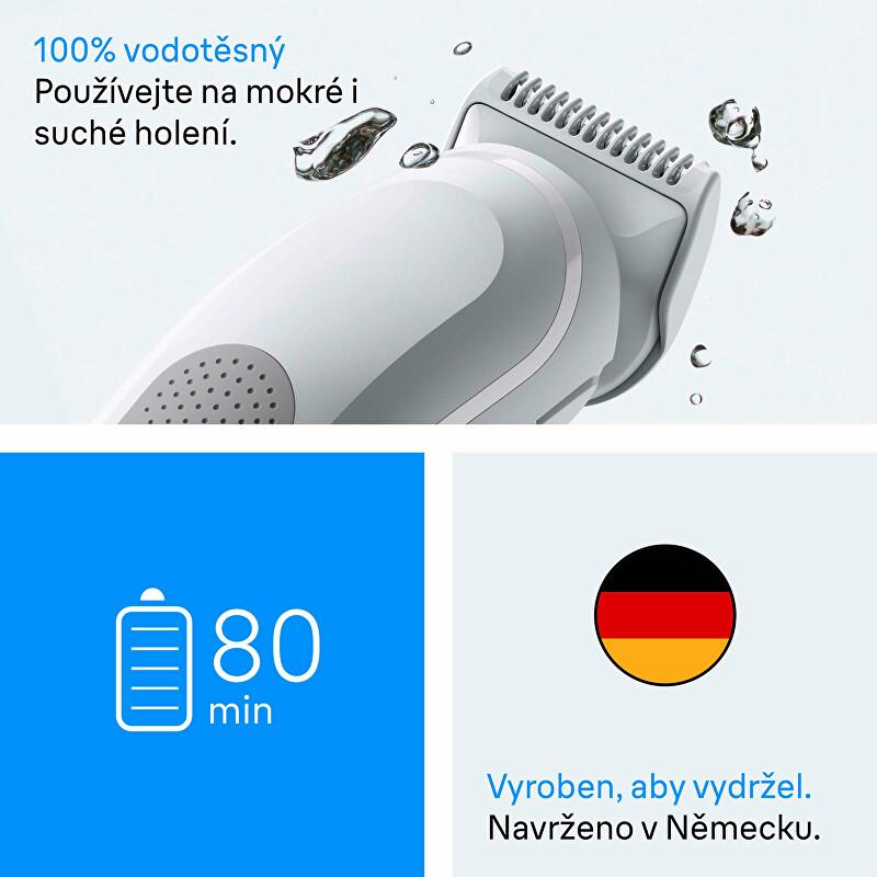 Zastřihovač chloupků Braun Series 3 BG3530 je ideálním pomocníkem pro muže, kteří hledají efektivní a šetrné řešení pro úpravu těla. Díky technologii SkinGuard je zajištěna ochrana pokožky před podrážděním, což umožňuje pohodlné zastřihování i v citlivých oblastech. Voděodolný design usnadňuje údržbu a čištění pod tekoucí vodou. S bezdrátovým provozem až 80 minut a rychlým nabíjením za 8 hodin je tento zastřihovač připraven na každodenní použití. Součástí balení je hřeben na tělo, nástavec pro citlivou pokožku a čisticí kartáček, což zaručuje maximální komfort a preciznost při úpravě.
