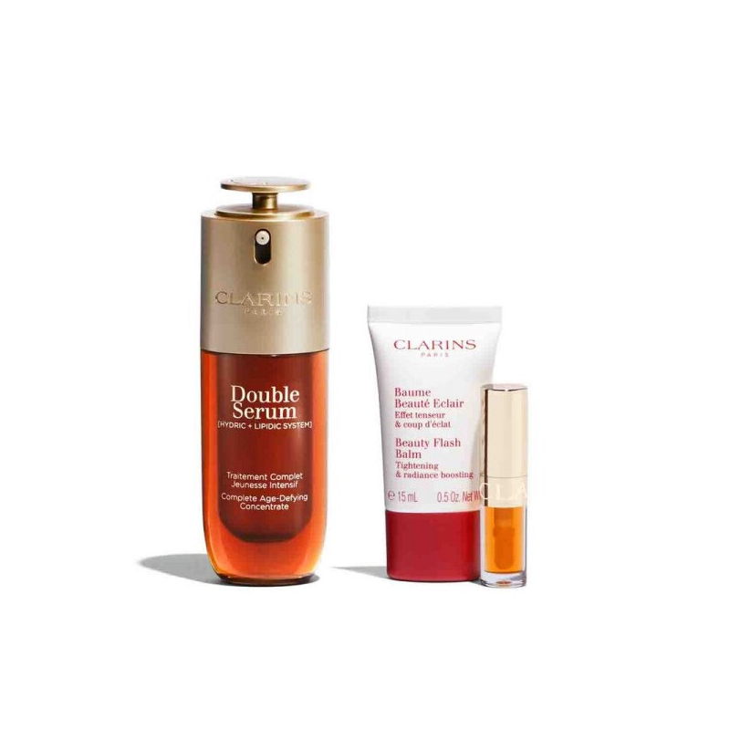 Dárková sada Double Serum Set od značky Clarins je ideálním řešením pro ty, kteří touží po mladistvé a zářivé pleti. Obsahuje intenzivní sérum proti stárnutí, které díky 21 aktivním rostlinným výtažkům, včetně kurkumy, aktivuje regenerační procesy pleti a redukuje známky stárnutí. Rozjasňující pleťový balzám Beauty Flash okamžitě oživí pleť, minimalizuje známky únavy a dodává hydrataci. Lehký olej na rty 01 Honey poskytuje rtům výživu a ochranu bez lepivého pocitu. Tato sada je skvělým dárkem, který potěší každou ženu, a navíc je dodávána v elegantní kosmetické tašce.