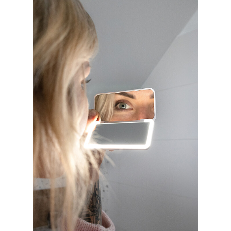 Kosmetické zrcátko s LED osvětlením je ideálním pomocníkem pro precizní líčení a péči o pleť. Díky jasnému a rovnoměrnému osvětlení si můžete být jisti, že uvidíte každý detail, i v méně osvětlených prostorách. Zrcátko nabízí praktické zvětšení 2x, což usnadňuje aplikaci make-upu a úpravu drobných nedostatků. Kompaktní design zaručuje snadné přenášení, a automatické zapnutí při otevření zrcátka šetří energii. S USB nabíjením a výdrží až 3 hodiny na jedno nabití se stává skvělým společníkem na cestách. Vhodné pro každou ženu, která dbá na detaily.