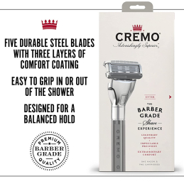 Cremo je značka, která se specializuje na výrobu vysoce kvalitních holicích strojků a příslušenství, jež splňují nejpřísnější standardy. Holicí strojek Cremo je vybaven pěti ostrými břity, které zajišťují precizní a hladké oholení bez podráždění. Třívrstvý komfortní povrch a mazací proužky s unikátním složením Cremo Shave Cream poskytují maximální skluz a pohodlí během holení. Výkyvná hlavice se přizpůsobí konturám obličeje, zatímco integrovaný výsuvný zarovnávací břit umožňuje snadné tvarování vousů a přístup k těžko dostupným místům.