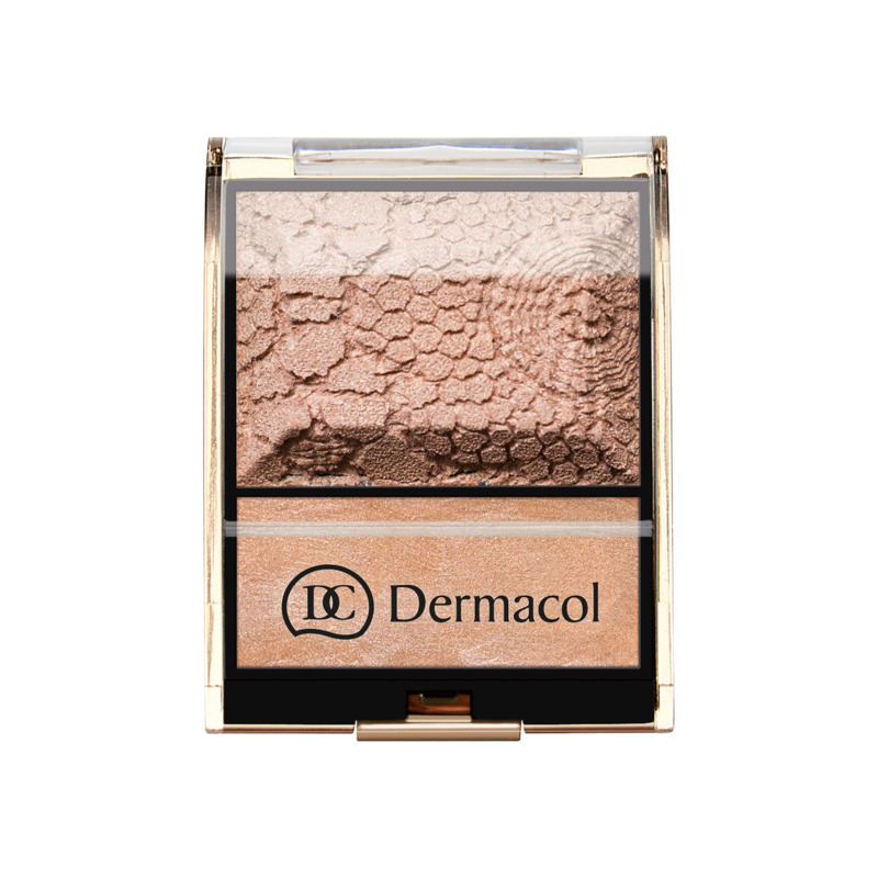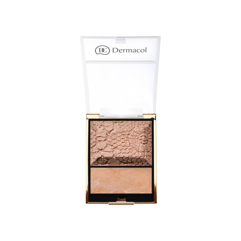 Rozjasněte svou pleť s paletkou rozjasňovačů od značky Dermacol, která přináší bronzově zlatavý a zdravý vzhled. Tato multifunkční paletka sjednocuje tón pleti a modeluje kontury obličeje, což zajišťuje přirozený efekt, jako byste právě přišla ze slunné pláže. Hedvábná pudrová textura se snadno nanáší a zanechává pleť jemnou a pěstěnou po celý den. Unikátní třpytivé částečky a perleť odrážejí světlo, dodávají pleti zářivý nádech a efektivně zvýrazňují její krásu. Dva harmonicky sladěné odstíny lze používat samostatně nebo je kombinovat pro dosažení dokonalého vzhledu.