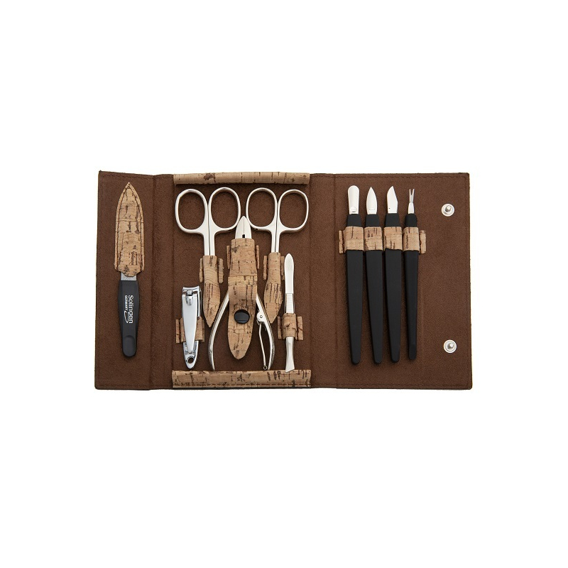Každý produkt prochází pečlivým zpracováním v čistém a hygienickém prostředí, které zajišťuje maximální kvalitu a bezpečnost. Všechny nástroje v manikúrové sadě jsou vyráběny s důrazem na preciznost a bezchybnost, což zaručuje jejich dlouhou životnost a efektivní použití. Balení do elegantního pouzdra se vzorem korku nejen chrání jednotlivé komponenty, ale také přináší stylový prvek do každodenní péče o tělo. Sada obsahuje vše potřebné pro dokonalou úpravu nehtů, od nůžek po zatlačovače kůžičky, což činí každou aplikaci snadnou a příjemnou.