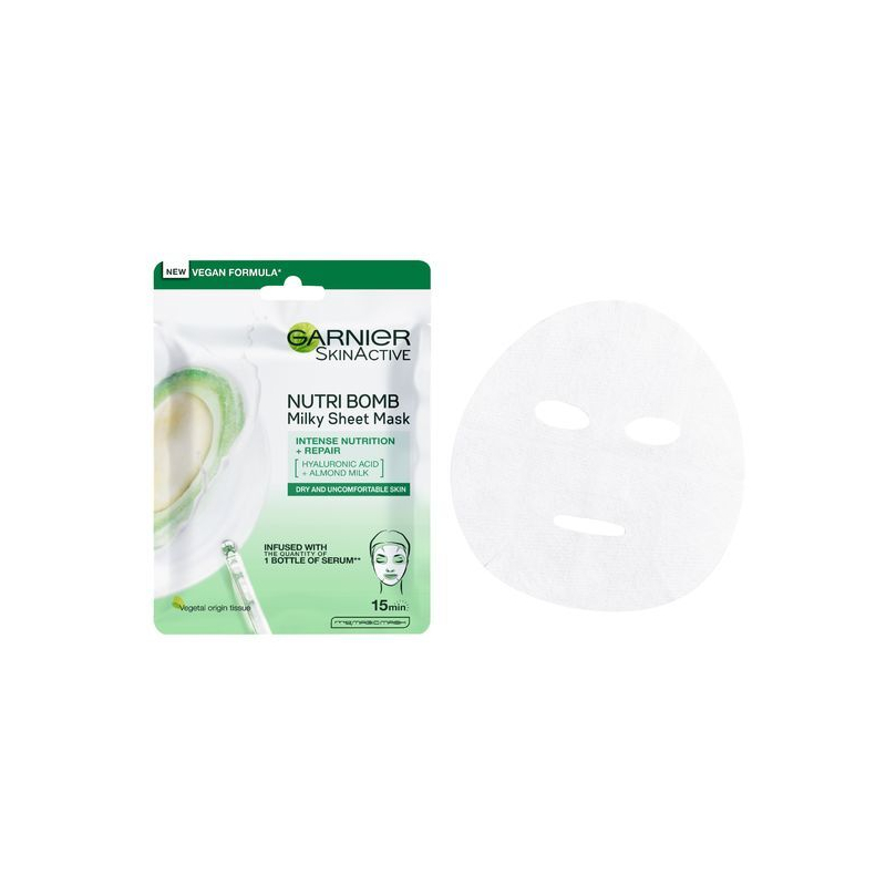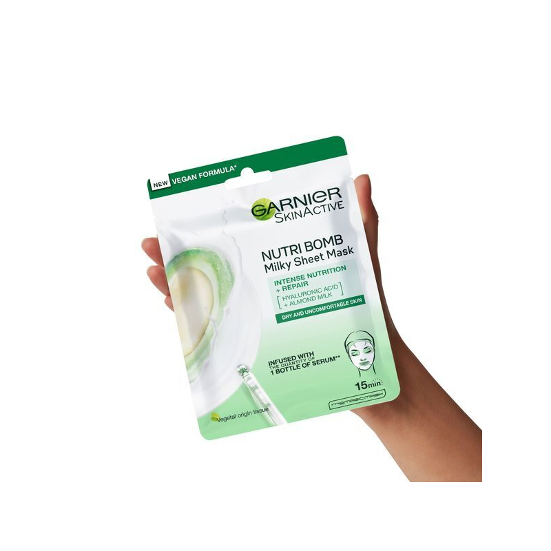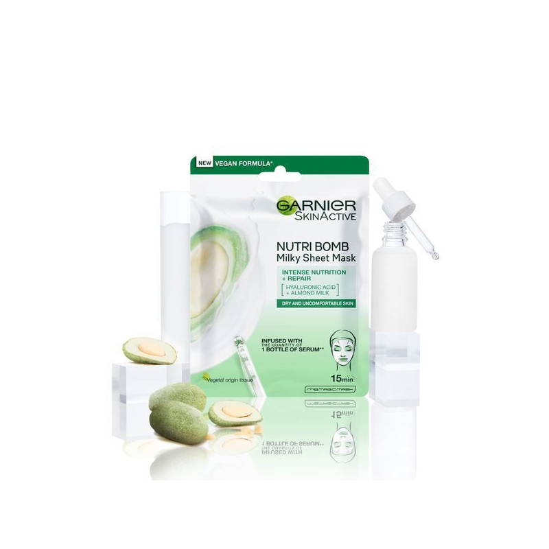 Textilní pleťová maska s mandlovým mlékem je ideálním řešením pro suchou a citlivou pleť. Díky obsahu bio mandlového mléka a kyseliny hyaluronové poskytuje intenzivní hydrataci a výživu již během 15 minut. Maska pomáhá zmírnit pnutí a suchost pleti, čímž ji zanechává jemnou a svěží. Její praktické použití zaručuje snadnou aplikaci – stačí ji umístit na obličej a nechat působit. Po sejmutí masky zůstává pleť dokonale hydratovaná a připravená na další péči. Dopřejte své pleti potřebnou péči a obnovte její přirozenou krásu s touto účinnou maskou.