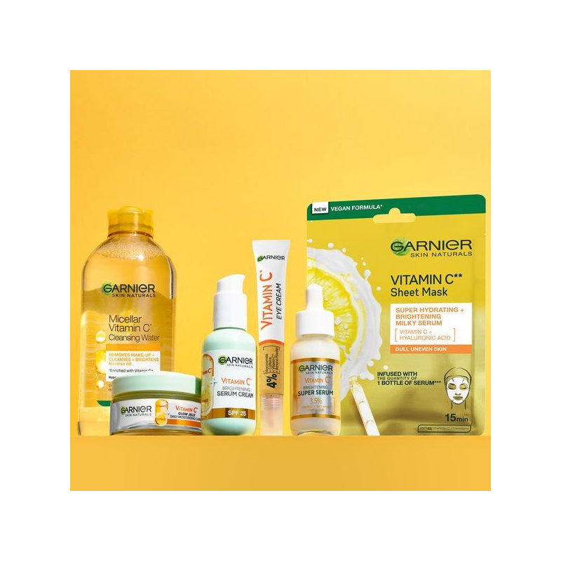 Rozjasňující oční krém s vitamínem C Skin Naturals je ideálním pomocníkem pro každého, kdo touží po svěží a zdravě vypadající pleti. Obsahuje 4% koncentraci vitamínu C, niacinamidu a kofeinu, které společně bojují proti známkám únavy a tmavým kruhům pod očima. Extrakt z banánu navíc vyplňuje jemné vrásky a zanechává pleť hladkou a revitalizovanou. Tento krém je vhodný pro každodenní použití, ať už během dne nebo v noci. Naneste na čisté a suché oční okolí a dopřejte svým očím potřebnou péči. Užívejte si pocit svěžesti a mladistvého vzhledu s každým použitím.