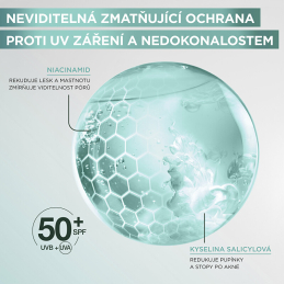 Lehký denní fluid s velmi vysokou ochranou SPF 50+ je ideálním společníkem pro pleť se sklony k nedokonalostem. Obsahuje kyselinu salicylovou, která účinně čistí póry a pomáhá redukovat pupínky, zatímco niacinamid sjednocuje tón pleti a zanechává ji matnou. Tento nekomedogenní produkt se snadno vstřebává, nezanechává bílý film a poskytuje dlouhotrvající ochranu před slunečním zářením. Použijte ho každé ráno jako poslední krok péče o pleť a užijte si svěží a zdravý vzhled po celý den. Vhodný pro mastnou a problematickou pleť, tento fluid je klíčem k bezchybnému vzhledu.