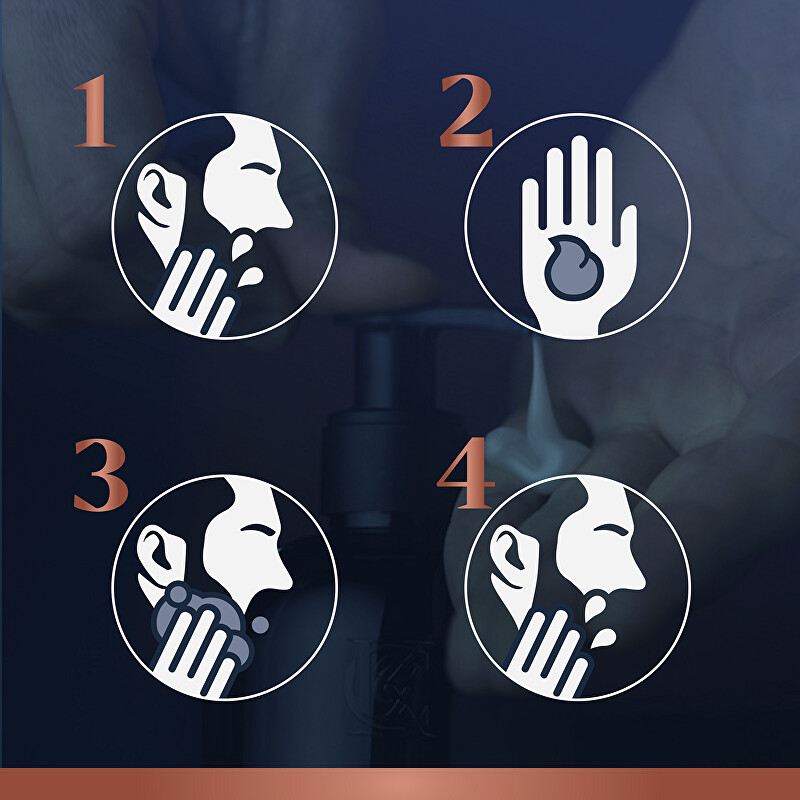 Naneste na vlhké vousy, napěňte a poté opláchněte.