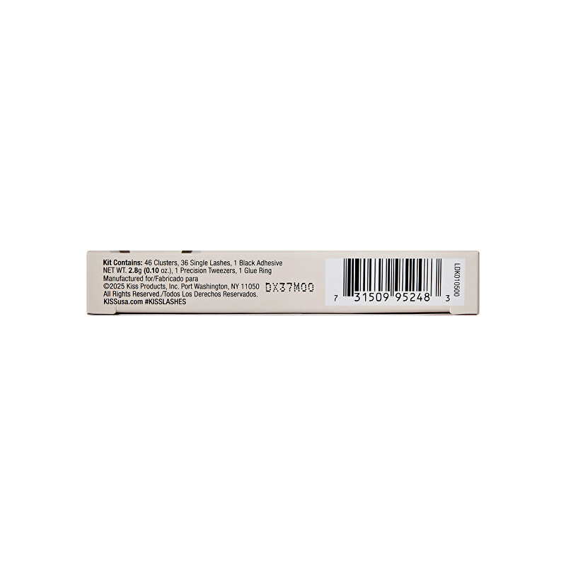 36 clusterů řas (8–12 mm), 10 náhradních clusterů (10 mm), 15 jednoduchých clusterů (10 mm), 21 spodních clusterů řas (6 mm), lepidlo na řasy, lepicí kroužek na řasy, pinzeta (aplikátor).