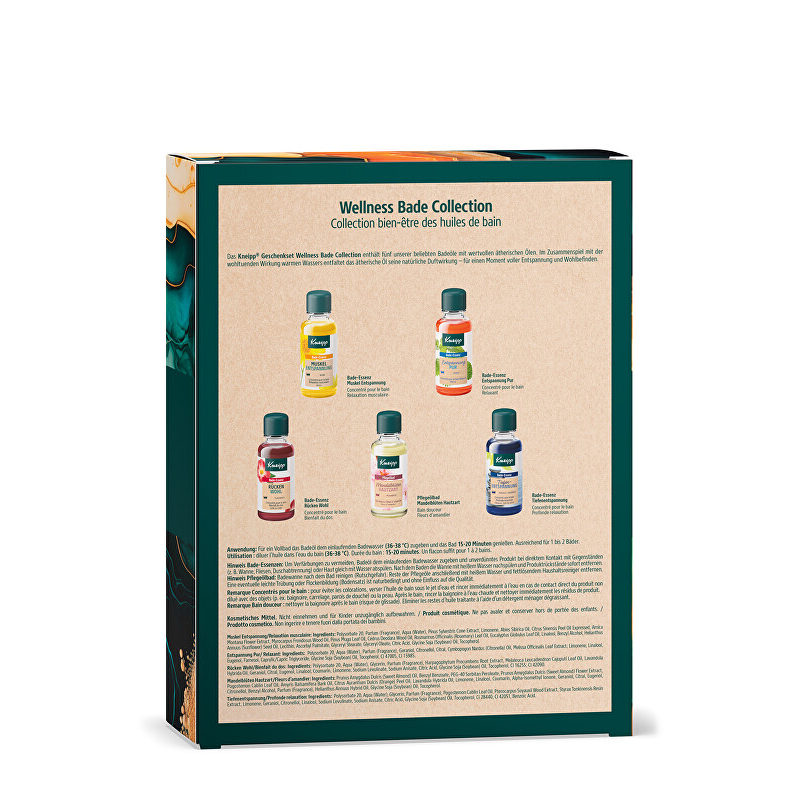 Dárková sada olejů do koupele přináší jedinečný zážitek aromaterapie přímo do vaší domácnosti. Sada obsahuje pět lahviček s oleji, které jsou ideální pro 1 až 2 koupele. Každý olej je obohacen o přírodní výtažky a esenciální oleje, které podporují relaxaci a uvolnění. Všechny produkty jsou veganské a neobsahují žádné živočišné složky, mikroplasty, parafíny ani silikony. Složení zahrnuje například olej z čertova drápu pro úlevu svalům a kloubům nebo mandlový olej pro jemnou péči o pokožku. Dopřejte si chvíle pohody a regenerace s touto elegantní dárkovou sadou.