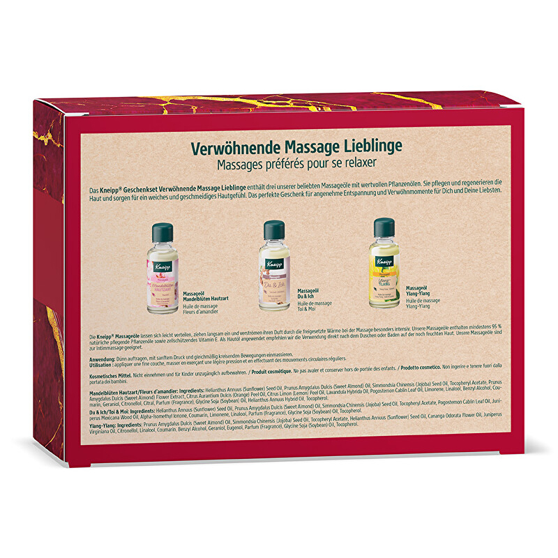 Dárková sada masážních olejů Kneipp přináší harmonii a péči pro vaši pokožku. Obsahuje tři výjimečné oleje, které jsou bohaté na přírodní složky, jako jsou slunečnicový, mandlový a jojobový olej. Tyto oleje hydratují, vyživují a regenerují pleť, aniž by zanechávaly mastný film. Pravidelná masáž nejenže zlepšuje spánek a odstraňuje únavu, ale také stimuluje krevní oběh a posiluje imunitu. esenciální oleje, jako je ylang-ylang a levandule, uvolňují mysl a přinášejí pocit pohody. Sada je ideálním dárkem pro každého, kdo si chce dopřát chvíle relaxace a objevování nových vůní.