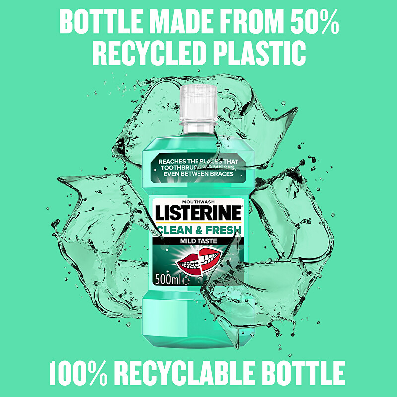 Ústní voda LISTERINE® Clean & Fresh Mild Taste 500 ml nabízí efektivní ochranu ústní dutiny díky své jedinečné kombinaci čtyř esenciálních olejů. Tento produkt posiluje zubní sklovinu a chrání před vznikem zubního kazu díky obsahu fluoridu. Účinně bojuje proti bakteriím, které se nacházejí i na místech, kam se zubní kartáček nedostane. Při pravidelném používání pomáhá udržovat zdravé dásně a omezuje tvorbu zubního plaku. Jemná mátová chuť je ideální nejen pro dospělé, ale i pro děti od 6 let. Navíc je láhev vyrobena z 50 % z recyklovaného plastu a je plně recyklovatelná. Pro svěží dech a komplexní ústní hygienu je LISTERINE® nezbytným pomocníkem.