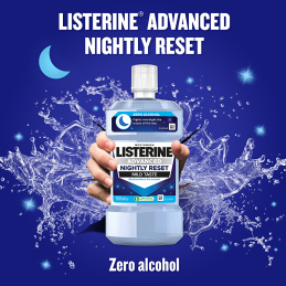 Ústní voda Advanced Nightly Reset Mild Taste je ideálním společníkem pro noční péči o ústní hygienu. Díky technologii RAPID FUSION™ efektivně remineralizuje zubní sklovinu a snižuje tvorbu kyselin, které vznikají po jídle a pití. Tato jemná ústní voda bez alkoholu nejenže bojuje proti hromadění bakterií během noci, ale také pomáhá omezit vznik zubního plaku. Při pravidelném používání poskytuje dlouhotrvající svěží dech a posiluje zuby, což oceníte zejména po náročném dni. Dopřejte svým zubům potřebnou ochranu a revitalizaci během spánku. Vhodné pro děti od 12 let.