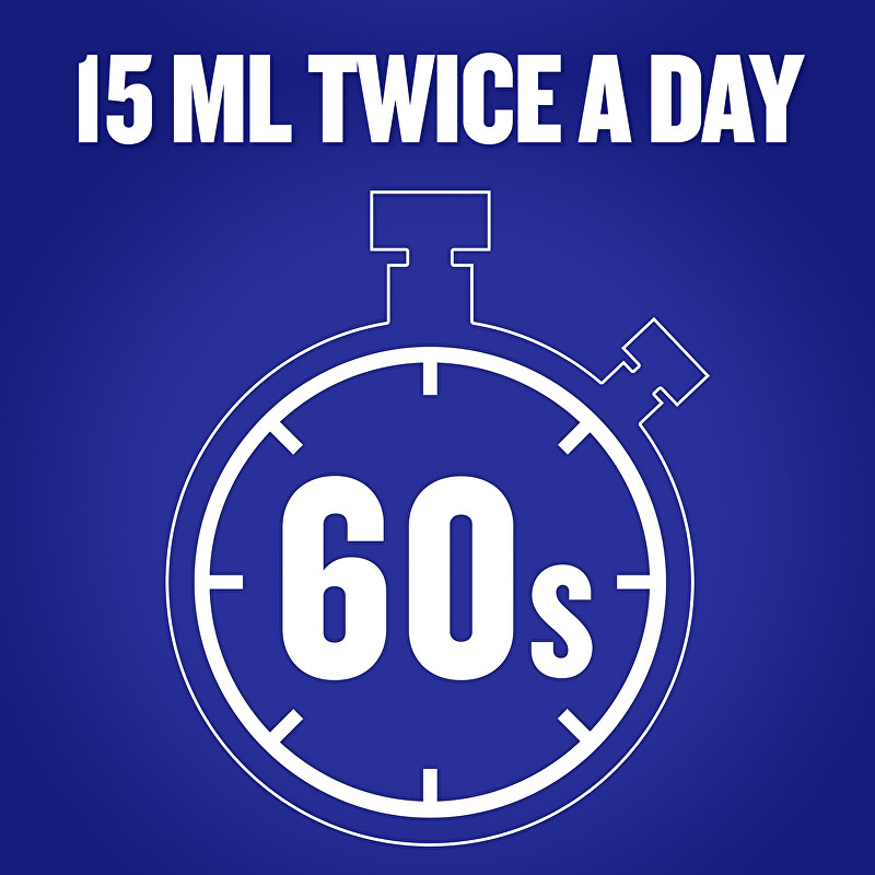 Používejte každý večer po vyčištění zubů. Odměřte 20 ml (cca 4 čajové lžičky), proplachujte ústa po dobu 60 sekund a poté vyplivněte. Nezapíjejte vodou.
