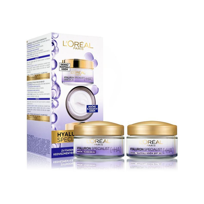 Kosmetická sada hydratační pleťové péče Hyaluron Specialist je ideálním řešením pro všechny, kdo touží po zdravé a hydratované pleti. Obsahuje denní krém s SPF 20 a noční krém, které kombinují vysokou koncentraci dvou typů kyseliny hyaluronové. Denní krém intenzivně hydratuje a vyhlazuje vrásky, zatímco noční krém pečuje o pleť během spánku a dodává jí potřebnou výživu. Lehká nemastná textura se snadno vstřebává a zanechává pleť svěží a vitální. Pro maximální efekt aplikujte ráno a večer na čistou pleť obličeje, krku a dekoltu. Vhodné pro všechny typy pleti.