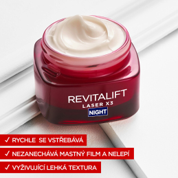 Noční krém Revitalift Laser X3 přináší revoluční přístup k péči o pleť. Díky aktivním látkám, jako je Pro-Xylane a fragmentovaná kyselina hyaluronová, efektivně vyhlazuje vrásky a zpevňuje pleť. Tento krém stimuluje obnovu kožních buněk, čímž navrací pleti její přirozenou hutnost a pružnost. Centella asiatica pak zklidňuje a regeneruje pleť během spánku. Po čtyřech týdnech pravidelného používání se můžete těšit na viditelné zpevnění a sjednocení tónu pleti. Ideální pro ženy ve věku 40 až 60 let, tento noční krém se stane vaší tajnou zbraní v boji proti stárnutí.