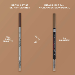Tužka na obočí Infaillible 12H Brow Definer přináší preciznost a přirozený vzhled, který oceníte každý den. S hrotem o tloušťce pouhých 1,5 mm snadno definujete a vyplníte obočí chloupek po chloupku, čímž dosáhnete dokonalého tvaru. Její unikátní složení zajišťuje, že se tužka neláme a hladce klouže po pleti, což usnadňuje aplikaci. Díky snadnému roztírání můžete obočí dotvarovat podle svých představ. Ideální pro každou ženu, která touží po přirozeném a elegantním vzhledu. Vytvořte si obočí, které okouzlí na první pohled.