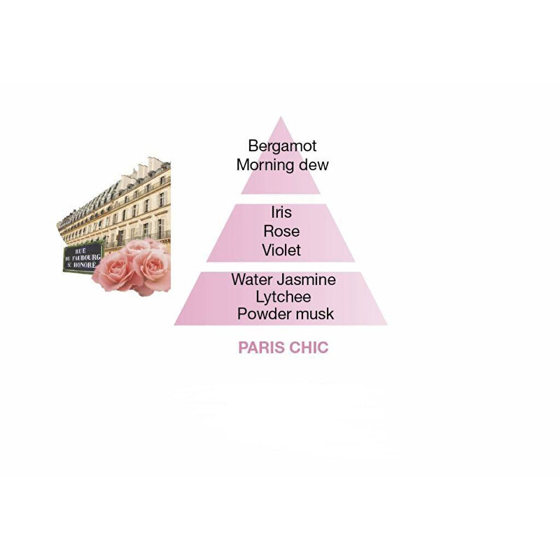Náplň do katalytické lampy, která nejen zbavuje ovzduší škodlivin a nebezpečných bakterií, ale taky úžasně provoní váš domov. Delikátní parfém kombinující moderní vůni s francouzským know-how. Otvírá se osvěžujícími citrusovými tóny, posléze vás zavede do růžové zahrady, kde vedle sebe v nádherné souhře barev a vůní kvetou růže, kosatce a svůdné fialky. Základem parfému je pak vůně vodního jasmínu zdůrazněná vůní pižma a liči. Složení vůně: hlava: bergamot, ranní rosa. Srdce: kosatec, růže, fialka. Základ: vodní jasmín, liči, pižmo.