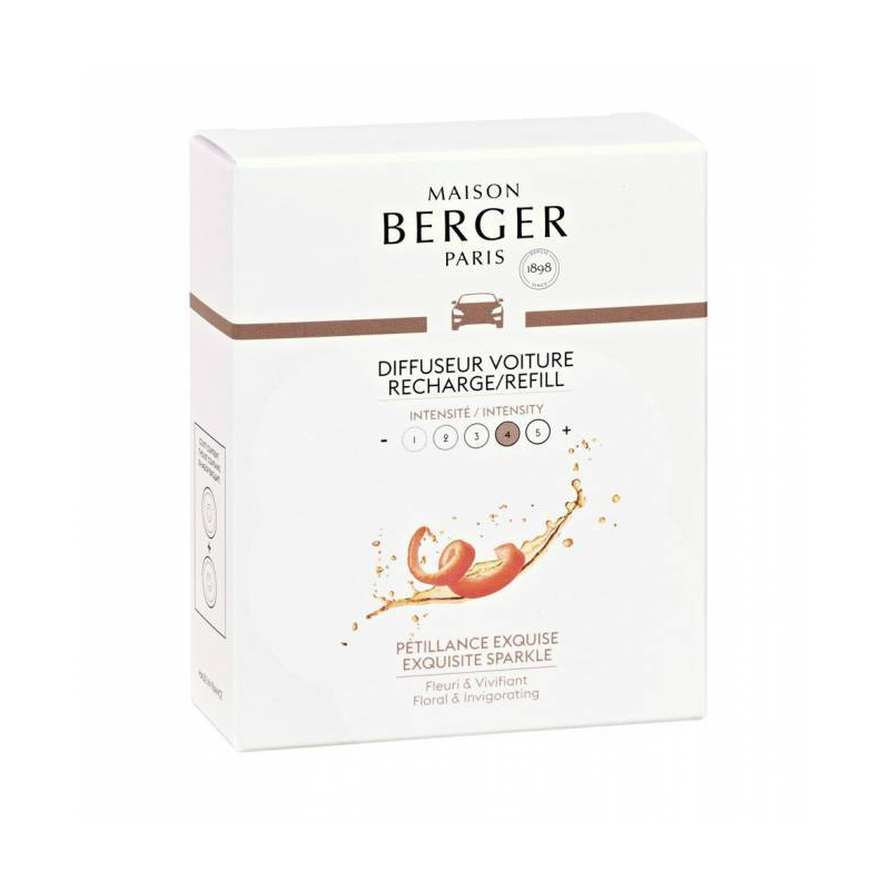 Náplň do difuzéru do auta, který lze snadno připevnit pomocí plastového klipu na průduchy klimatizace. Intenzita vůně je vyznačena na obalu číslem 1–5. Parfém, který vás povznese a dobře naladí, ideální pro slavnostní příležitosti, jako jsou Vánoce nebo posezení s přáteli. Na počátku vůně naladí vaše chuťové buňky vysokými tóny plnými živé citrusové vůně z kůry grepu. Posléze vás začne lákat středními květinovými tóny růží a konvalinek s elegantními příslibem pačuli. A jako třešničku na dortu si pro vás ve svém závěru schovává vůni fialek, pižma a šampaňského vína. Složení vůně: hlava: grapefruit. Srdce: pačuli, růže, konvalinka. Základ: fialka, pižmo, šampaňské.
