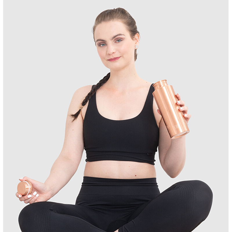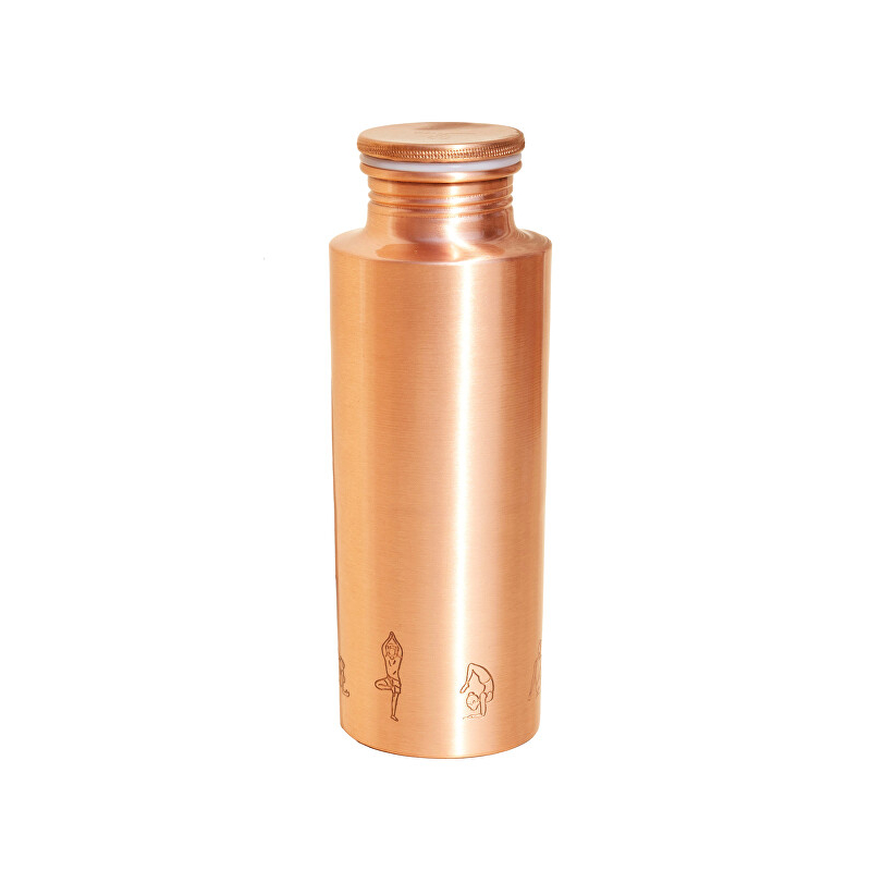 Měděná lahev YOGA7 o objemu 700 ml je ideálním společníkem pro každého, kdo hledá harmonii mezi zdravým životním stylem a estetikou. Vyrobena z 99% čisté mědi, obohacuje vodu o příznivé vlastnosti, které podporují správnou hydrataci a přispívají k rovnováze a vitalitě. Stylový design s motivy jógy dodává láhvi jedinečný vzhled, který skvěle doplní vaši jógovou rutinu. Vnější lakovaná vrstva zajišťuje snadnou údržbu a lesklý povrch. Používejte ji s neperlivou vodou, nechte měď působit přes noc a ráno si dopřejte osvěžující "vitální nápoj".