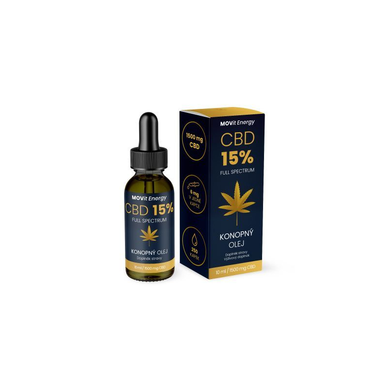 CBD 15% Full Spectrum konopný olej od značky MOVit Energy je vysoce kvalitní doplněk stravy, který obsahuje přírodní kanabidiol (CBD) bez psychoaktivních účinků. Tento olej je vyroben z konopného extraktu a lisovaného konopného oleje, což zajišťuje bohatý obsah prospěšných látek. Pravidelným užíváním přispívá k podpoře imunitního systému, zlepšuje stav pleti náchylné k akné a ekzémům a podporuje psychickou pohodu. Doporučené dávkování je 1-3 kapky denně, které stačí nakapat pod jazyk. S objemem 10 ml je ideální pro každodenní použití. Užívejte zodpovědně a skladujte na suchém místě.