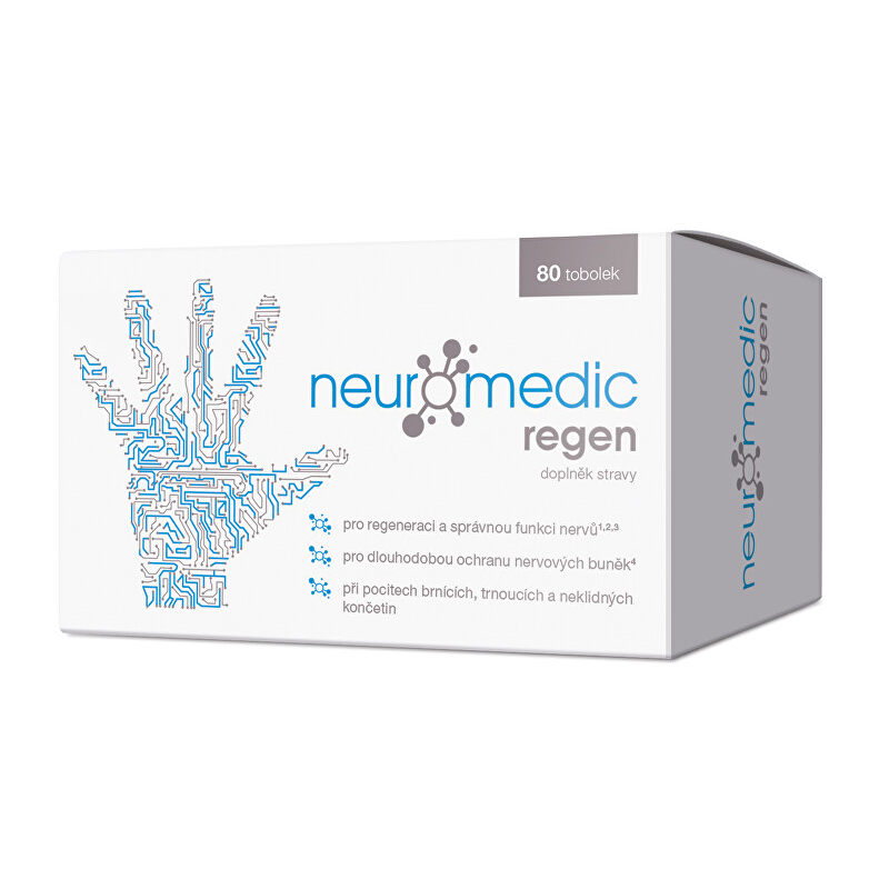 Neuromedic Regen je účinný doplněk stravy, který podporuje zdraví nervové soustavy díky vysokým dávkám vitaminů B a resveratrolu z vinné révy. Obsahuje thiamin, pyridoxin a cyanocobalamin, které přispívají k normální činnosti nervů, psychické pohodě a energetickému metabolismu. Resveratrol navíc zajišťuje ochranu nervových buněk před negativními vlivy okolního prostředí. Doporučuje se užívat 1 tobolku denně, v prvním týdnu až 2 tobolky. Neuromedic Regen je ideální volbou pro ty, kteří chtějí podpořit zdraví svých nervů a zlepšit celkovou pohodu. Balení obsahuje 80 tobolek.
