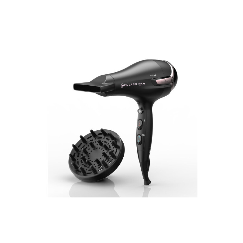 Vysoušeč vlasů Bellissima 11523 K9 2300 ION je ideálním pomocníkem pro rychlé a efektivní styling. S výkonem 2300 W a DC motorem zajišťuje rychlé vysušení a precizní úpravu účesu. Díky profesionálnímu tenkému koncentrátoru a osmi možnostem nastavení teploty a proudu si můžete snadno přizpůsobit fénování podle svých potřeb. Funkce studeného vzduchu pak dokonale zafixuje váš účes, čímž zajistí dlouhotrvající výsledky. Odnímatelný filtr usnadňuje údržbu, zatímco délka šňůry 1,8 m poskytuje pohodlný dosah. S difuzérem v balení si navíc můžete užít i objemné vlny.