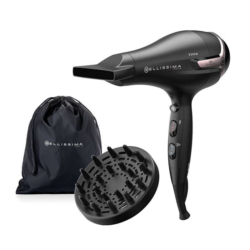 Vysoušeč vlasů Bellissima 11860 K9 2500 Ion s výkonem 2300 W přináší revoluci do každodenní péče o vlasy. Ergonomický design zajišťuje pohodlné používání, zatímco ionizační technologie chrání vlasy před vysušováním a minimalizuje krepatění. S osmi kombinacemi teploty a rychlosti, včetně funkce studeného vzduchu pro zafixování účesu, si můžete snadno přizpůsobit styling podle svých potřeb. V balení naleznete difuzér pro vlnité vlasy a úzký koncentrátor pro precizní styling. Odnímatelný filtr usnadňuje údržbu, a dlouhý kabel o délce 1,8 m poskytuje maximální komfort při manipulaci.