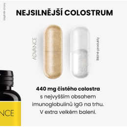 100% bovinní colostrum, 440 mg IG 40 v 1 želatinové kapsli.