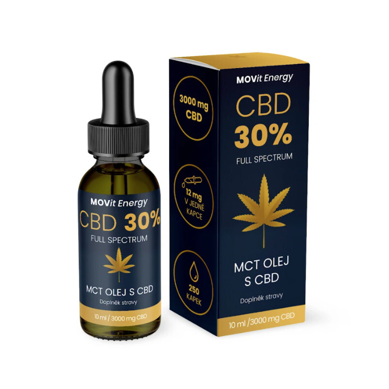 CBD 30% Full Spectrum MCT olej od MOVit Energy je vysoce kvalitní doplněk stravy, který kombinuje MCT olej s přírodním extraktem CBD. Tento nepsychoaktivní kanabidiol podporuje přirozené procesy v těle a přispívá k posílení imunitního systému. Olej je ideální pro každodenní užívání, pomáhá udržovat zdravou pokožku a může být prospěšný při péči o pleť náchylnou k akné, ekzémům a lupénce. Doporučené dávkování je 1-3 kapky denně, které snadno aplikujete pod jazyk. Složení je čisté a přírodní, bez přidaných chemických látek. Užívejte pro podporu zdraví a pohody.