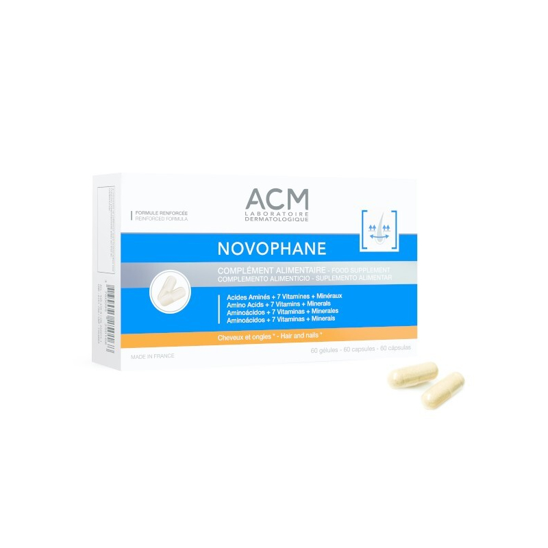 Novophane je účinný doplněk stravy, který podporuje zdraví vlasů a nehtů díky pečlivě vybranému složení. Obsahuje komplex aminokyselin, biotin a zinek, které napomáhají udržení jejich dobrého stavu. Vitamin C a E chrání buňky před oxidačním stresem, zatímco měď a hořčík přispívají k normální pigmentaci a energetickému metabolismu. Tablety vyrobené z rostlinné želatiny jsou bez lepku a laktózy, což je činí vhodnými pro široké spektrum uživatelů. Doporučuje se užívat 2 kapsle denně po dobu 3 měsíců pro dosažení optimálních výsledků. Vybavte se pro zdravější vzhled vlasů a nehtů.