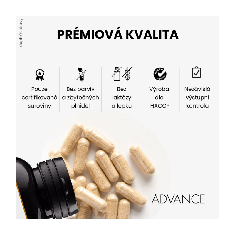 Doplněk stravy. Není určeno pro děti, těhotné a kojící ženy. Neužívejte při známé přecitlivělosti na některou ze složek produktu. Nepřekračujte doporučené dávkování. Není určeno jako náhrada pestré stravy. V případě potřeby se o vhodnosti užívání poraďte s vaším lékařem nebo lékárníkem. Skladujte v suchu a temnu při teplotě do 25 °C. Ukládejte mimo dosah dětí. Neobsahuje lepek, laktózu ani mléčnou bílkovinu.