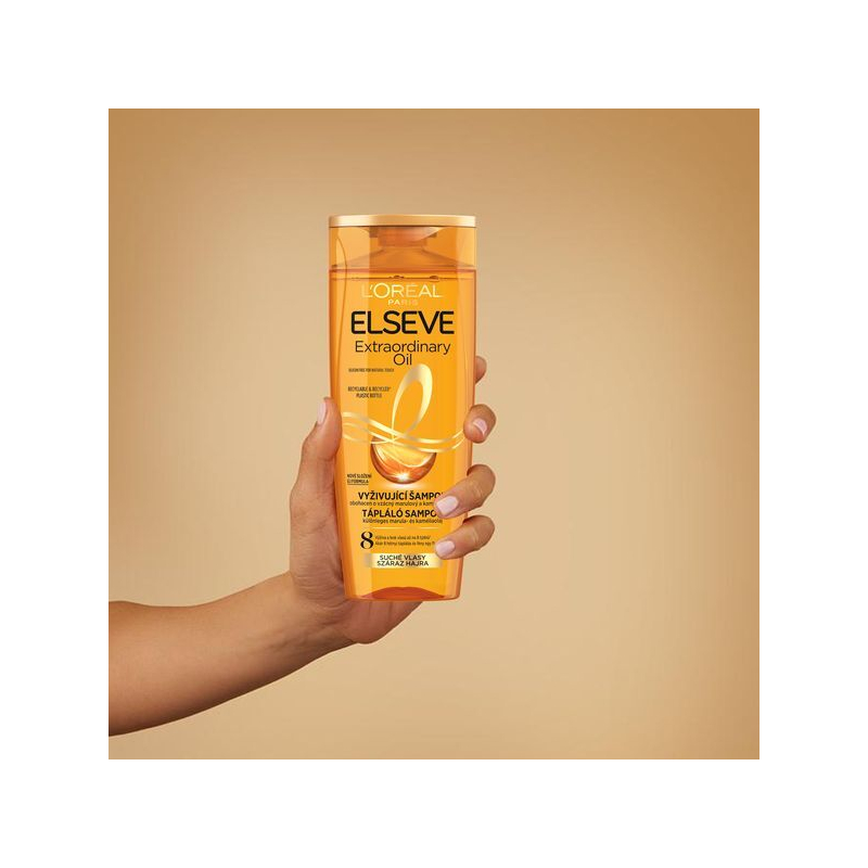 Vyživující šampon Elseve s obsahem šesti vzácných olejů z květů je ideálním řešením pro suché a unavené vlasy. Tento šampon nejenže vyživuje a hydratuje, ale také posiluje vlasové vlákno, čímž dodává vlasům potřebnou pevnost a lesk. Jeho jemná konzistence se snadno aplikuje a při každém mytí přináší pocit luxusu. Po použití budou vlasy hebké na dotek a zářivé na pohled. Aplikujte na mokré vlasy, jemně promasírujte a důkladně opláchněte. Dopřejte svým vlasům péči, kterou si zaslouží, a užijte si krásu zdravých a silných vlasů.