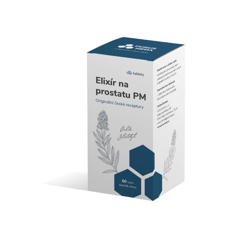 Elixír na prostatu PM je doplněk stravy určený pro muže, který podporuje zdravou funkci prostaty a přispívá k celkové pohodě. Obsahuje pečlivě vybrané přírodní látky, jako je zlatobýl, vrbovka malokvětá a saw palmetto, které pozitivně ovlivňují močovou soustavu a reprodukční zdraví. Dále je obohacen o kopřivu dvoudomou a slivoň africkou, které podporují vitalitu a přirozenou obranyschopnost organismu. Doporučené dávkování je jedna tableta ráno a jedna večer, což zajišťuje dlouhodobý přínos. Elixír je ideální volbou pro muže, kteří chtějí podpořit své zdraví přirozeným způsobem.