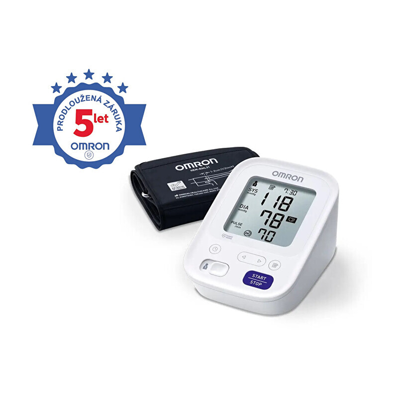 Tlakoměr OMRON M3 Easy je moderní přístroj určený pro přesné měření krevního tlaku na paži. Je vybaven velkým, přehledným displejem a univerzální prodlouženou EASY manžetou, která se snadno přizpůsobí obvodu paže od 22 do 42 cm. Díky technologii Intellisense zajišťuje rychlé a komfortní měření. Přístroj obsahuje řadu užitečných funkcí, jako je indikátor vysokého tlaku, kontrola utažení manžety a detekce arytmie, což přispívá k přesnosti výsledků. S dělenou pamětí pro dva uživatele a režimem host je ideální pro domácí použití. Klinicky ověřeno a doporučeno Českou společností pro hypertenzi.