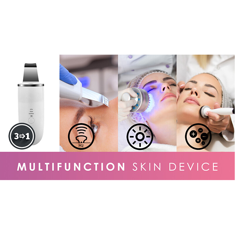 Ultrazvuková špachtle Peel&Lift Premium bílá BR-1530 je revoluční kosmetický přístroj, který přináší salonní péči přímo do vašeho domova. S frekvencí ultrazvuku 24 kHz efektivně čistí pleť, odstraňuje nečistoty a odumřelé buňky, aniž by ji poranil. Galvanický proud s kladnou a zápornou ionizací zajišťuje hloubkové zapracování kosmetických přípravků, což maximalizuje jejich účinnost. Fotonové modré světlo o vlnové délce 465 nm pomáhá v prevenci akné a zlepšuje vzhled pleti. Vibrační mikromasáž stimuluje prokrvení a tonizuje pleť. Díky elegantnímu designu a bezdrátovému použití se stává ideálním pomocníkem pro každodenní péči.