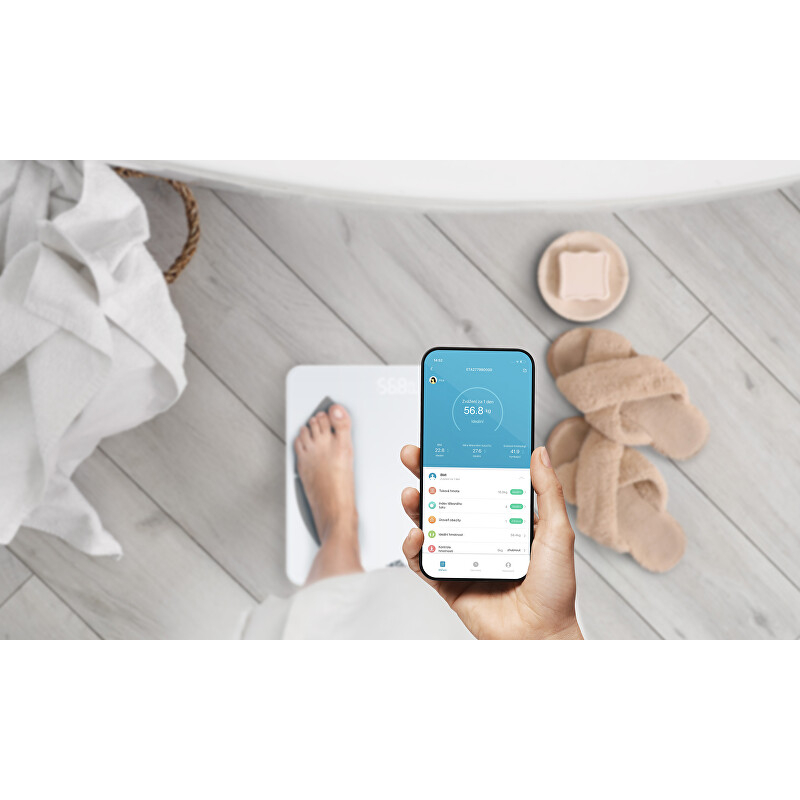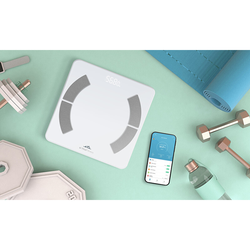 Analytická osobní váha Vital Fitness přináší revoluci do sledování vaší tělesné kondice. S nosností až 180 kg a rozlišením 100 g umožňuje měřit hmotnost v různých jednotkách. Díky aplikaci ETA Smart získáte podrobný přehled o svých tělesných hodnotách, jako je metabolický věk, viscerální tuk či množství vody v těle. Váha umožňuje nastavení individuálních cílů a ukládání dat pro až 10 uživatelů, což z ní činí ideální volbu pro celou rodinu. Kompatibilita s Androidem a iOS zajišťuje snadné propojení. Napájení zajišťují tři AAA baterie, které jsou součástí balení. Elegantní bílý design se hodí do každého interiéru.