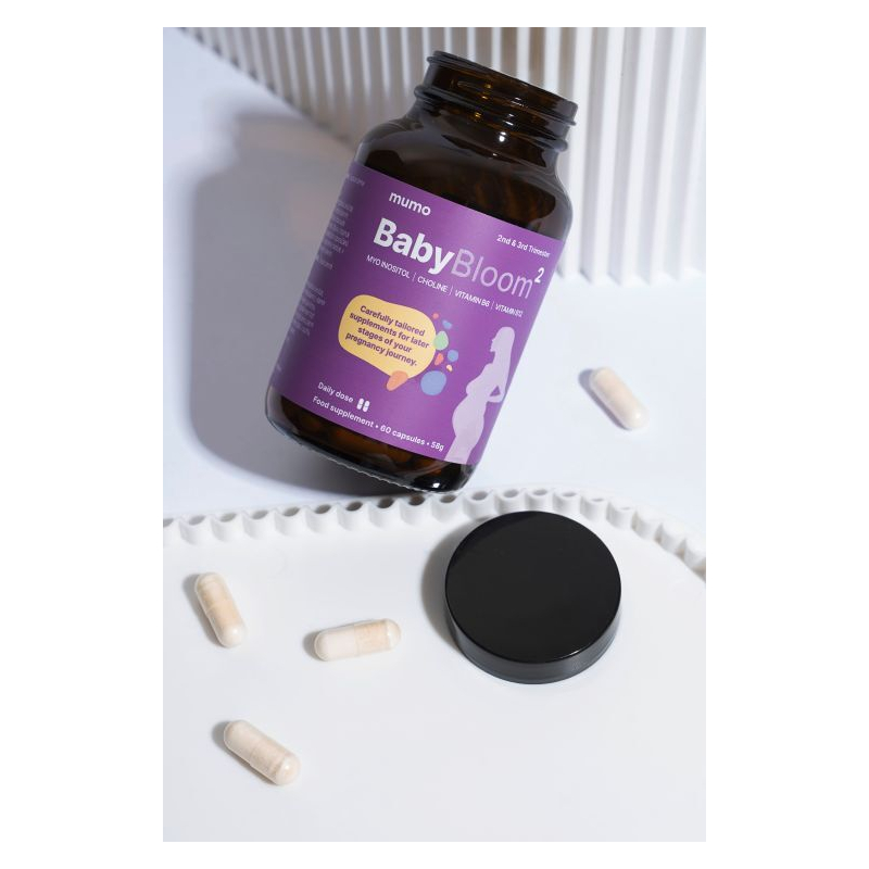BabyBloom 2 je prémiový doplněk stravy určený pro ženy ve 2. a 3. trimestru těhotenství. Obsahuje myo-inozitol a L-cholin bitartrát, které přispívají k normálnímu metabolismu lipidů a podporují správný vývoj nervové soustavy plodu. Dále je obohacen o vitaminy B6 a B12, které napomáhají udržení normální činnosti nervového systému a snižují únavu. Doporučuje se užívat 2 kapsle denně nalačno, ideálně ráno. BabyBloom 2 je veganský a bez laktózy, což z něj činí skvělou volbu pro zdravý životní styl během těhotenství.