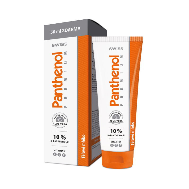 Panthenol 10% Swiss PREMIUM - tělové mléko je ideálním pomocníkem pro regeneraci sluncem podrážděné pokožky. S vysokým obsahem D-panthenolu, aloe vera a vitamínů A, D, E a F, toto mléko účinně zklidňuje a vyživuje suchou pleť po opalování, pobytu v soláriu či v chlorované vodě. Snadno se roztírá, rychle se vstřebává a nezanechává mastný film. Dermatologicky testováno, bez parabenů, je vhodné i pro citlivou pokožku a děti. Měsíček lékařský podporuje hojení, zatímco vitamíny chrání pleť před volnými radikály a zajišťují její zdravý vzhled. Dopřejte své pokožce potřebnou péči a hydrataci.