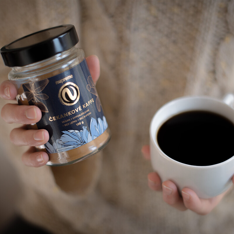 Čekankové kaffe od značky Nupreme je lahodný instantní nápoj z kořene čekanky, ideální přírodní náhražka kávy. Tento produkt je zcela bez kofeinu, což znamená, že si ho můžete vychutnat kdykoliv během dne bez obav z nežádoucích účinků. Je také bez alergenů a bezlepkový, což jej činí bezpečným pro osoby s celiakií a alergiemi. Čekanka je známá pro své pozitivní účinky na trávení, což přispívá k celkovému zdraví. Snadno se připravuje – stačí dvě kávové lžičky směsi zalít horkou vodou. Dopřejte si zdravou alternativu kávy, která vás potěší svou jemnou chutí a vůní. Balení obsahuje 150 g.