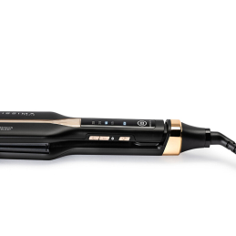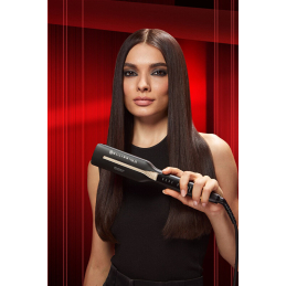 Žehlička na vlasy Bellissima s destičkami 4XL přináší revoluci v péči o vlasy. Díky technologii Infrared&Ion dosáhnete dokonale hladkých pramenů za poloviční čas. Čtyři topná tělesa zajišťují efektivní narovnání, přičemž první sada destiček uhlazuje vlasy a druhá fixuje výsledek po celé délce. Infračervené teplo proniká do vlasů a chrání je, zatímco záporné ionty eliminují krepatění a udržují přirozenou vlhkost. Inteligentní systém řízení tepla zaručuje bezpečné používání při nízkých teplotách. Flexibilní desky se přizpůsobí každému typu vlasů, a elektronický displej umožňuje snadné nastavení teploty. S automatickým vypnutím po 60 minutách je zajištěna bezpečnost. Otočný kabel o délce 2,5 m poskytuje maximální pohodlí při stylingu.