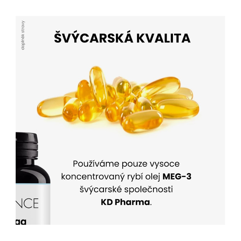 Omega ADVANCE je prémiový doplněk stravy, který obsahuje vysoce koncentrovaný švýcarský rybí olej MEG-3. Každá kapsle dodává 300 mg omega 3 mastných kyselin, včetně 145 mg EPA a 105 mg DHA, které přispívají k normální činnosti srdce, mozku a zraku. Doplněk neobsahuje lepek, laktózu ani mléčnou bílkovinu, což z něj činí ideální volbu pro široké spektrum uživatelů. Doporučené dávkování pro dospělé je 1-2 kapsle denně, což zajišťuje dostatečný přísun pro podporu zdravého životního stylu. Balení obsahuje 90 kapslí, což vystačí na 45 až 90 dní užívání.