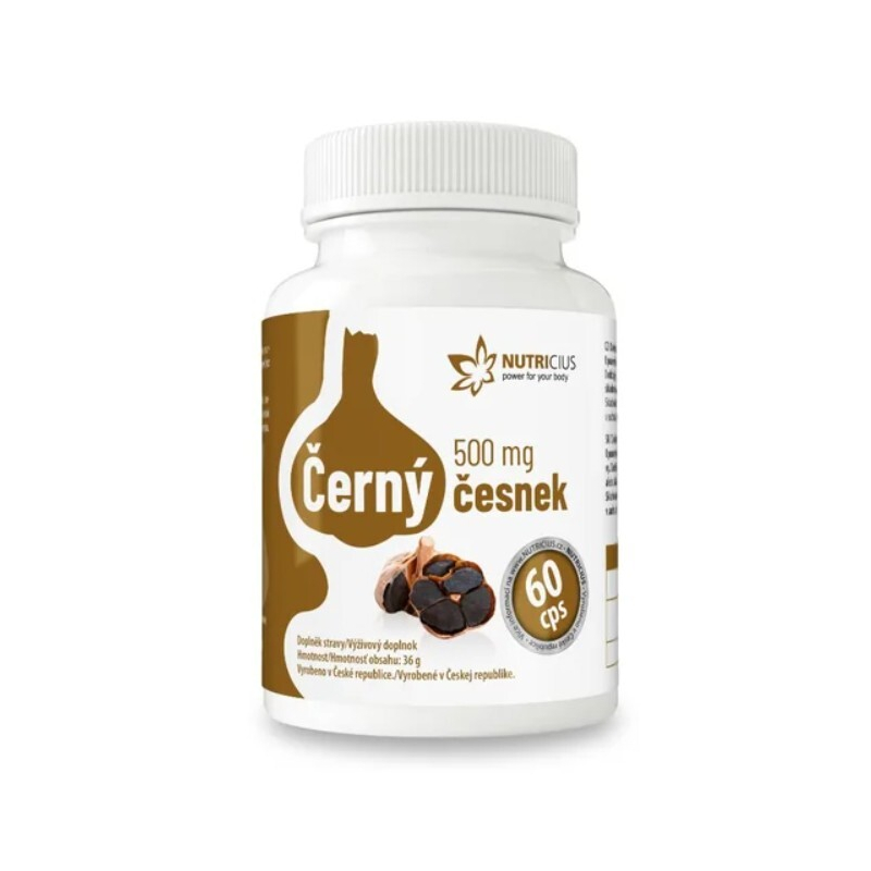 Černý česnek 500 mg od značky Nutricius je vysoce kvalitní doplněk stravy, který podporuje normální činnost srdce a cévní soustavy. Díky jedinečnému procesu fermentace je černý česnek bez zápachu a palčivé chuti, což z něj činí ideální volbu pro každého, kdo hledá zdravou alternativu. Obsahuje 500 mg fermentovaného česneku v každé kapsli, což přispívá k udržení normální hladiny cholesterolu a přirozené obranyschopnosti organismu. Doporučujeme užívat 1-3 kapsle denně po jídle, dostatečně zapít tekutinou. Tento produkt je vhodný pro každého, kdo dbá na zdravý životní styl.